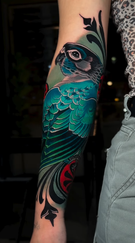 Bad Chico mezcla la fluidez del graffiti con la arquitectura del estilo Ornamental. Viajó a la meca del tatuaje en Alemania.