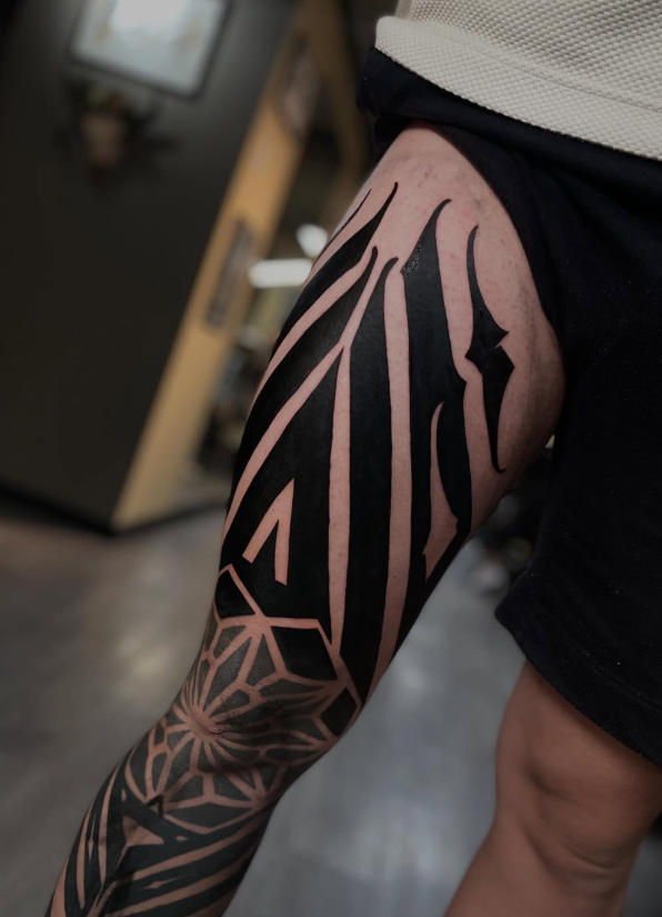 Bad Chico mezcla la fluidez del graffiti con la arquitectura del estilo Ornamental. Viajó a la meca del tatuaje en Alemania.